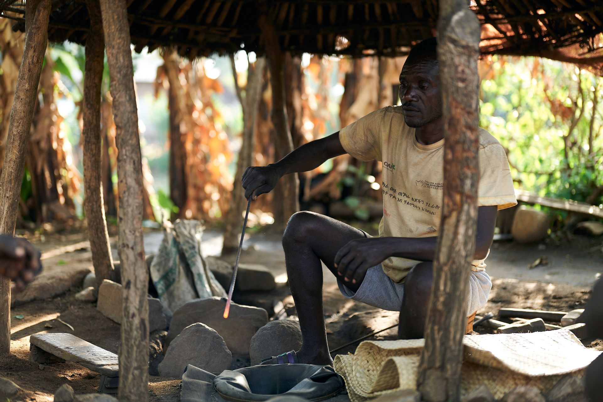Both genders wear jewelry, and the women's skirts are made of koisha leaves. The Ari are skilled at clay and metal work and produce a popular local corn-based alcohol.