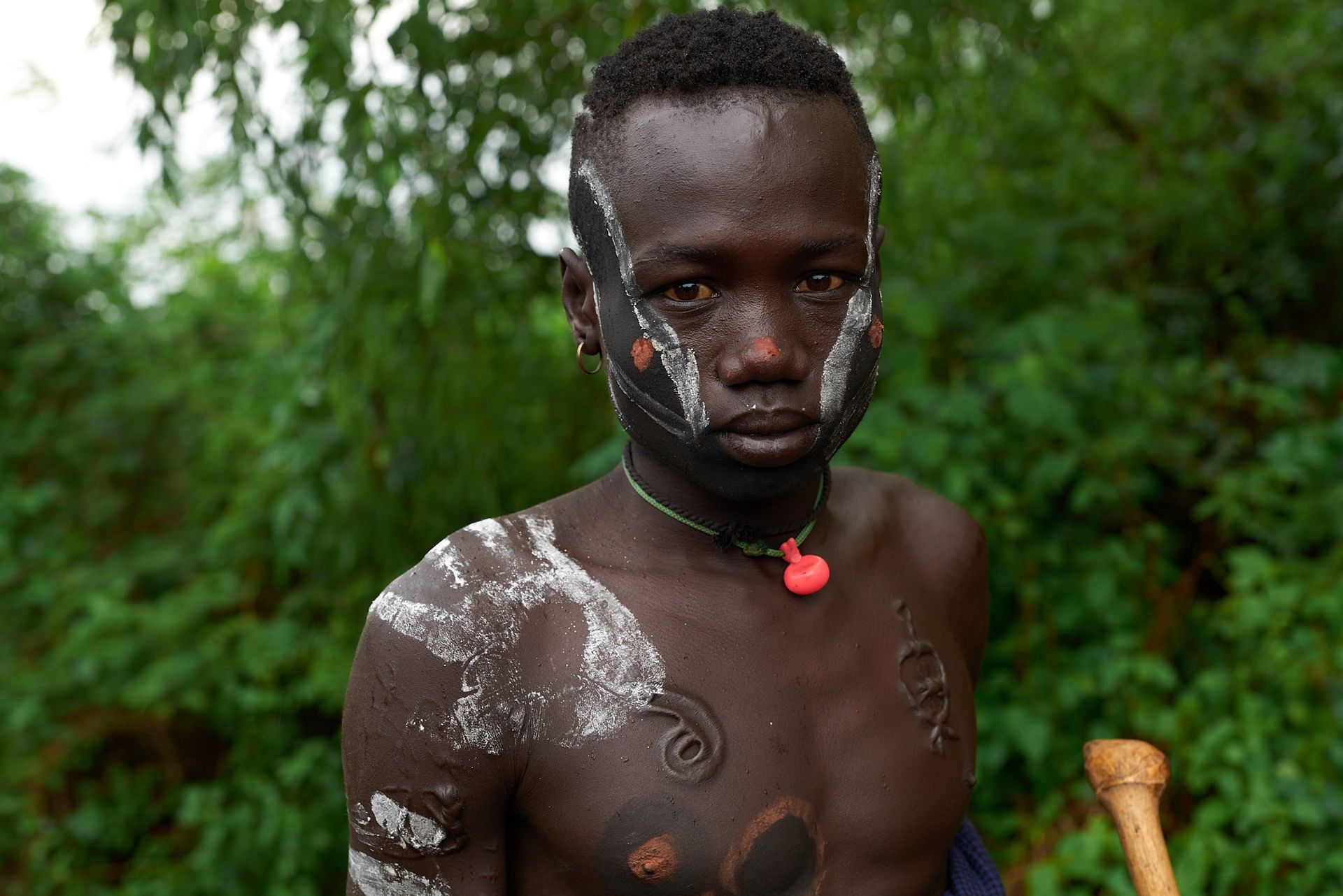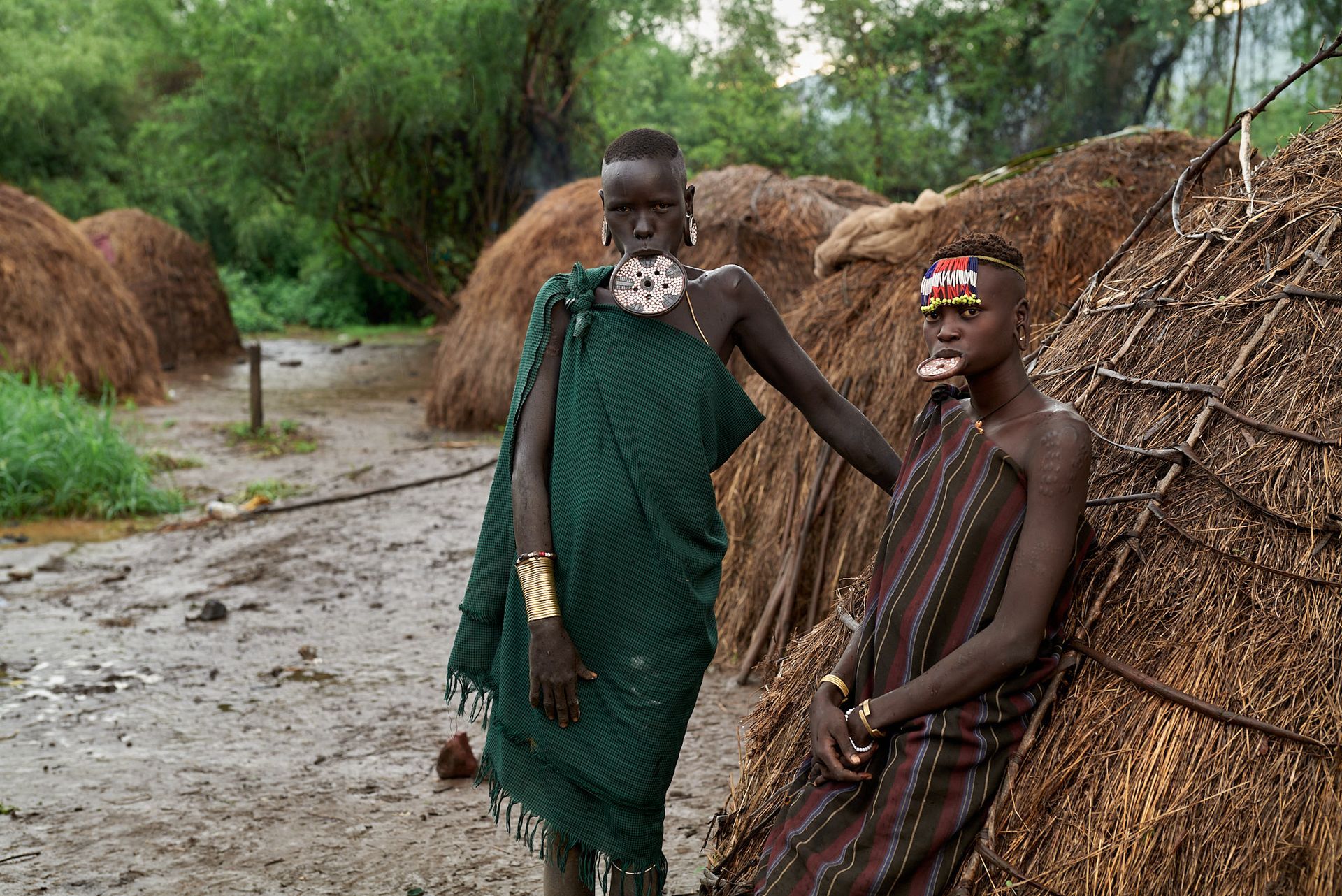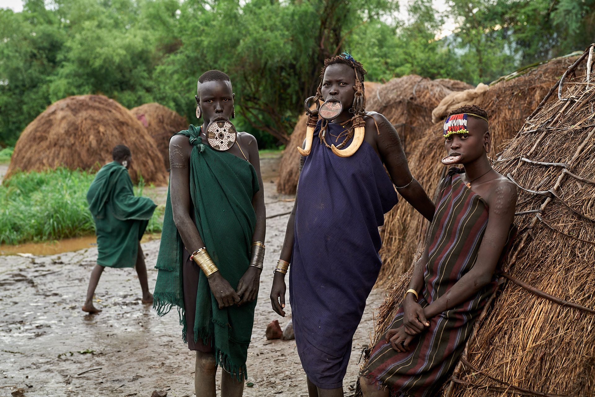 The Mursi are a Nilotic ethnic group in Ethiopia's South Omo Zone. They are known for their unique cultural practices. For example, Mursi men engage in light scarification after killing an adversary, while Mursi women undergo lip piercing to wear a lip plate, which increases their bride price. Both men and women paint their faces and bodies with white chalk before dances and rituals.